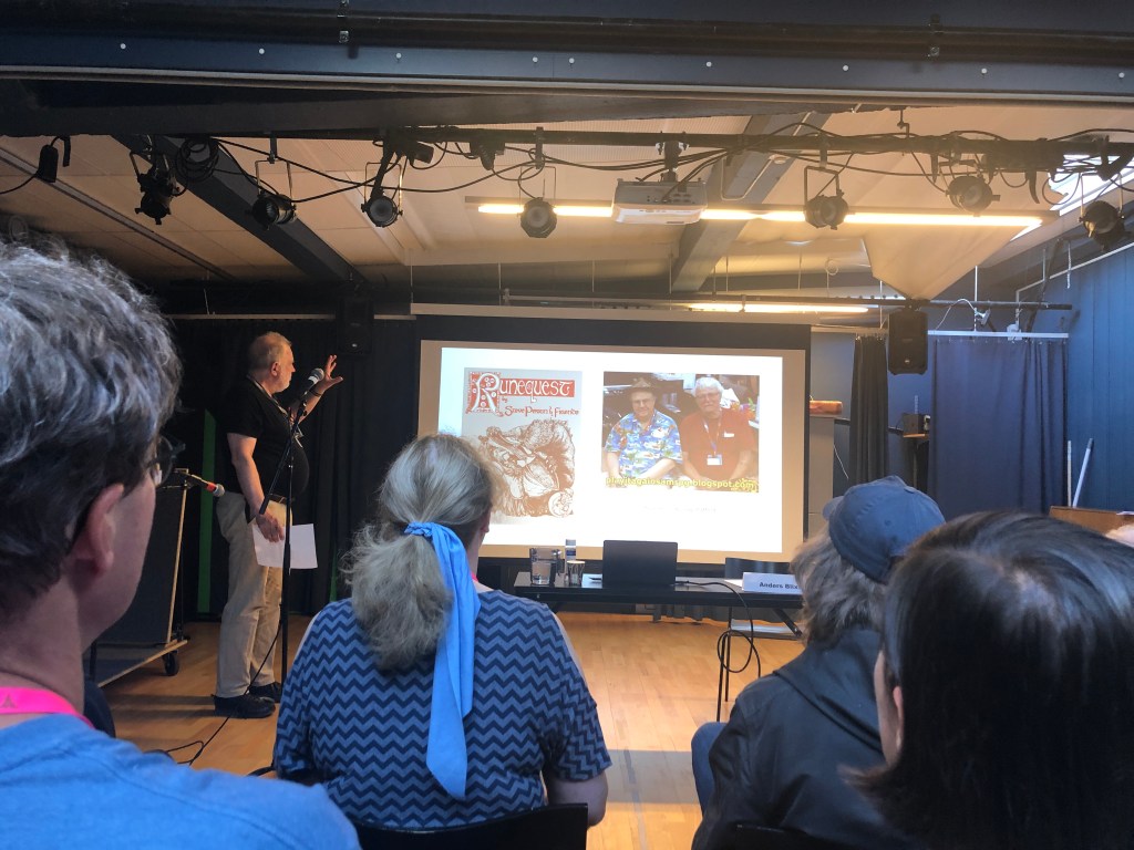 Det mesta var sig likt, och jag kände igen många ansikten. Jag besökte två föredrag och ett panelsamtal på lördagen, referat från dem går att läsa i mina två tidigare inlägg Höviska riddare, aktuell svensk fantastik och déjà vu och Sveriges främsta fantastikexport? Alla tre var intressanta, även om bara panelsamtalet hade en stark koppling till fantastik i bokformat, medan de två föredragen handlade om arkeologi respektive rollspel.